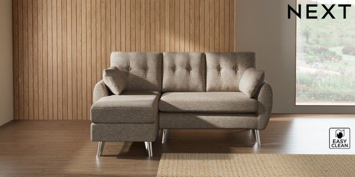 7.3.1 Buy Wilson Buttoned Back Small Sofa Chaise - Left Hand Chunky Boucle Easy Clean Mid Natural Metal Tapered - Chrome from the Seasons online shop Click here to use our website with more accessibility support, for example screen readers
