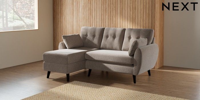 7.2.10 Buy Wilson Buttoned Back Small Sofa Chaise - Left Hand Chunky Chenille Light Dove Retro Tapered - Dark from the Seasons online shop Click here to use our website with more accessibility support, for example screen readers