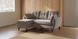 7.3.1 Buy Wilson Buttoned Back Small Sofa Chaise - Left Hand Chunky Chenille Light Dove Retro Tapered - Dark Brown from the Seasons online shop Click here to use our website with more accessibility support, for example screen readers