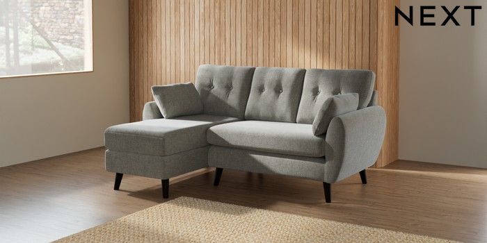 7.2.10 Buy Wilson Buttoned Back Small Sofa Chaise - Left Hand Chunky Chenille Light Grey Retro Tapered - Dark from the Seasons online shop Click here to use our website with more accessibility support, for example screen readers