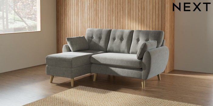 7.2.10 Buy Wilson Buttoned Back Small Sofa Chaise - Left Hand Chunky Chenille Light Grey Retro Tapered - Light from the Seasons online shop Click here to use our website with more accessibility support, for example screen readers