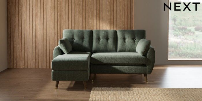 7.3.1 Buy Wilson Buttoned Back Small Sofa Chaise - Left Hand Chunky Texture Mid Forest Green Low Retro Tapered Metal Cap - Mid from the Seasons online shop Click here to use our website with more accessibility support, for example screen readers