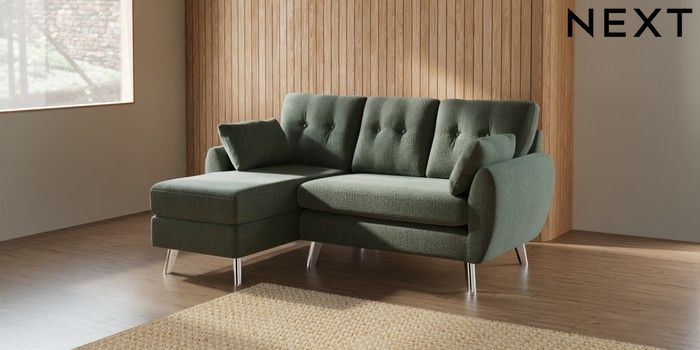 7.3.1 Buy Wilson Buttoned Back Small Sofa Chaise - Left Hand Chunky Texture Mid Forest Green Metal Tapered - Chrome from the Seasons online shop Click here to use our website with more accessibility support, for example screen readers