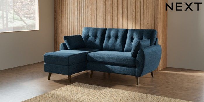7.2.10 Buy Wilson Buttoned Back Small Sofa Chaise - Left Hand Cotswold Chenille Dark Blue Retro Tapered - Mid from the Seasons online shop Click here to use our website with more accessibility support, for example screen readers