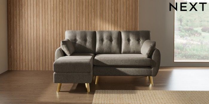 7.3.1 Buy Wilson Buttoned Back Small Sofa Chaise - Left Hand Cotswold Chenille Mid Mink Brown Metal Tapered - Gold from the Seasons online shop Click here to use our website with more accessibility support, for example screen readers