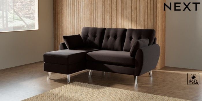 7.3.1 Buy Wilson Buttoned Back Small Sofa Chaise - Left Hand Fine Chenille Easy Clean Chocolate Brown Metal Tapered - Chrome from the Seasons online shop Click here to use our website with more accessibility support, for example screen readers
