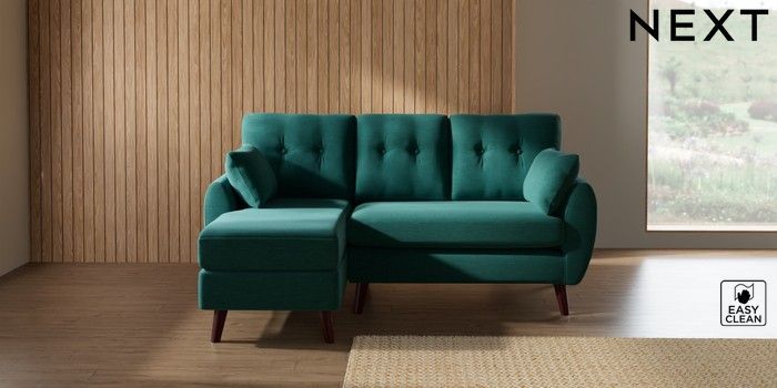 7.3.1 Buy Wilson Buttoned Back Small Sofa Chaise - Left Hand Fine Chenille Easy Clean Dark Juniper Green Retro Tapered - Dark Brown from the Seasons online shop Click here to use our website with more accessibility support, for example screen readers