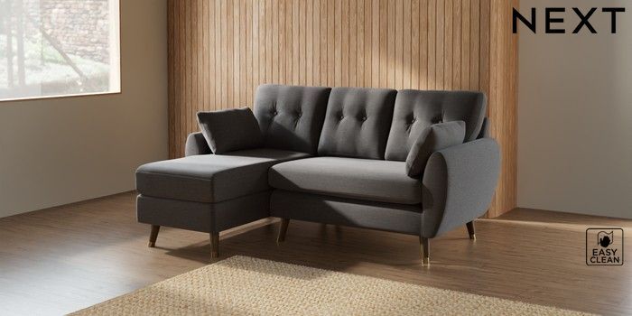 7.3.1 Buy Wilson Buttoned Back Small Sofa Chaise - Left Hand Fine Chenille Easy Clean Dark Smoke Grey Low Retro Tapered Metal Cap - Mid from the Seasons online shop Click here to use our website with more accessibility support, for example screen readers