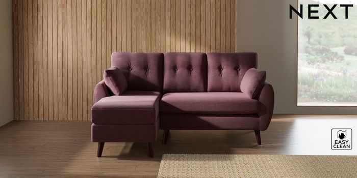 7.3.1 Buy Wilson Buttoned Back Small Sofa Chaise - Left Hand Fine Chenille Easy Clean Mid Mulberry Purple Retro Tapered - Dark Brown from the Seasons online shop Click here to use our website with more accessibility support, for example screen readers