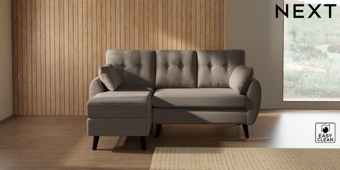 7.3.1 Buy Wilson Buttoned Back Small Sofa Chaise - Left Hand Fine Chenille Easy Clean Mid Taupe Brown Retro Tapered - Dark from the Seasons online shop Click here to use our website with more accessibility support, for example screen readers