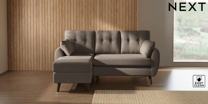 7.3.1 Buy Wilson Buttoned Back Small Sofa Chaise - Left Hand Fine Chenille Easy Clean Mid Taupe Brown Retro Tapered - Mid from the Seasons online shop Click here to use our website with more accessibility support, for example screen readers
