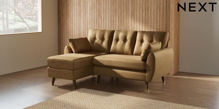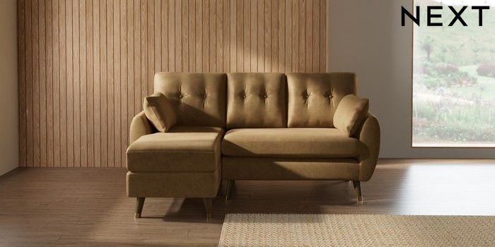 7.3.1 Buy Wilson Buttoned Back Small Sofa Chaise - Left Hand Luxe Chenille Honey Yellow Low Retro Tapered Metal Cap - Mid from the Seasons online shop Click here to use our website with more accessibility support, for example screen readers