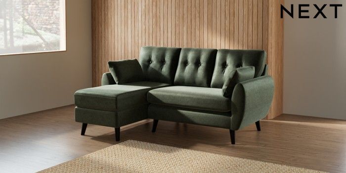 7.2.10 Buy Wilson Buttoned Back Small Sofa Chaise - Left Hand Luxe Chenille Mid Green Retro Tapered - Dark from the Seasons online shop Click here to use our website with more accessibility support, for example screen readers