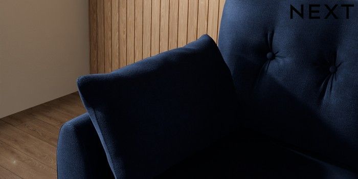 7.3.1 Buy Wilson Buttoned Back Small Sofa Chaise - Left Hand Luxe Chenille Navy Blue Low Retro Tapered Metal Cap - Mid from the Seasons online shop Click here to use our website with more accessibility support, for example screen readers