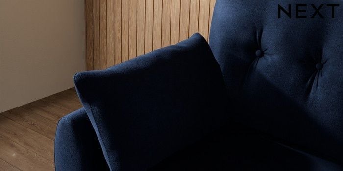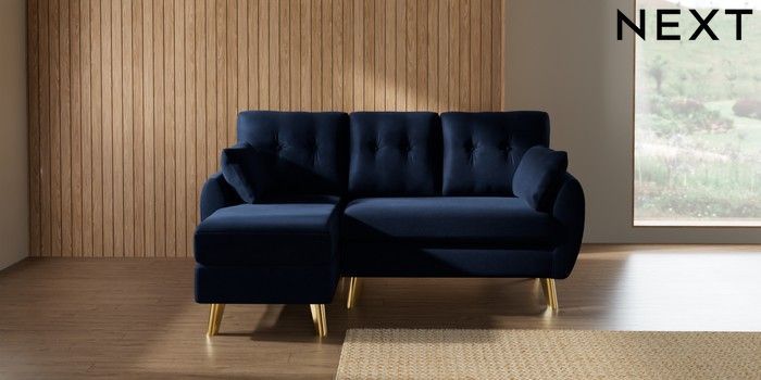 7.3.1 Buy Wilson Buttoned Back Small Sofa Chaise - Left Hand Luxe Chenille Navy Blue Metal Tapered - Gold from the Seasons online shop Click here to use our website with more accessibility support, for example screen readers