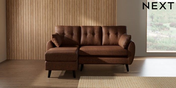 7.3.1 Buy Wilson Buttoned Back Small Sofa Chaise - Left Hand Monza Faux Leather Easy Clean Chestnut Brown Retro Tapered - Dark from the Seasons online shop Click here to use our website with more accessibility support, for example screen readers