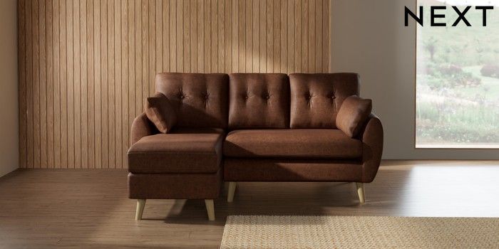 7.3.1 Buy Wilson Buttoned Back Small Sofa Chaise - Left Hand Monza Faux Leather Easy Clean Chestnut Brown Retro Tapered - Light from the Seasons online shop Click here to use our website with more accessibility support, for example screen readers