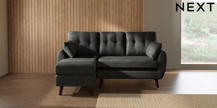 7.3.1 Buy Wilson Buttoned Back Small Sofa Chaise - Left Hand Monza Faux Leather Easy Clean Dark Grey Retro Tapered - Dark Brown from the Seasons online shop Click here to use our website with more accessibility support, for example screen readers