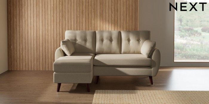 7.3.1 Buy Wilson Buttoned Back Small Sofa Chaise - Left Hand Natural Mix Light Natural Retro Tapered - Dark Brown from the Seasons online shop Click here to use our website with more accessibility support, for example screen readers