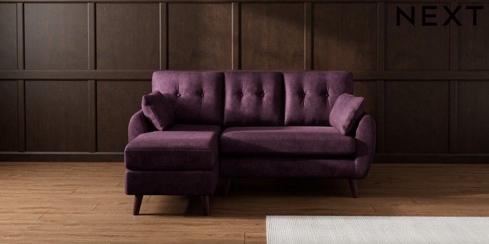 7.3.1 Buy Wilson Buttoned Back Small Sofa Chaise - Left Hand Plush Chenille Dark Plum Purple Retro Tapered - Dark Brown from the Seasons online shop Click here to use our website with more accessibility support, for example screen readers