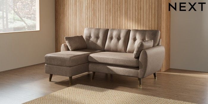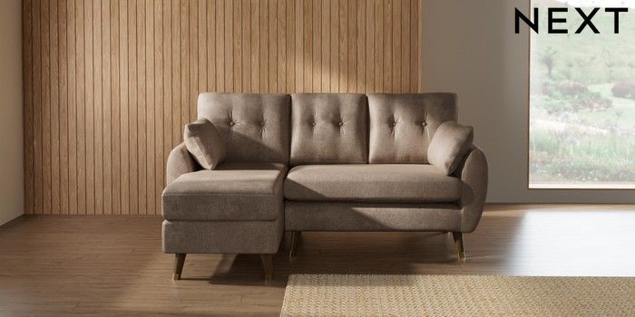 7.3.1 Buy Wilson Buttoned Back Small Sofa Chaise - Left Hand Plush Chenille Mid Natural Low Retro Tapered Metal Cap - Mid from the Seasons online shop Click here to use our website with more accessibility support, for example screen readers