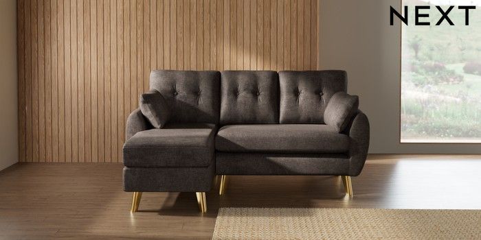 7.3.1 Buy Wilson Buttoned Back Small Sofa Chaise - Left Hand Plush Chenille Mink Brown Metal Tapered - Gold from the Seasons online shop Click here to use our website with more accessibility support, for example screen readers