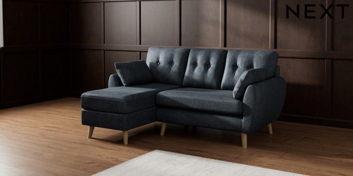 7.2.10 Buy Wilson Buttoned Back Small Sofa Chaise - Left Hand Plush Chenille Slate Blue Retro Tapered - Light from the Seasons online shop Click here to use our website with more accessibility support, for example screen readers
