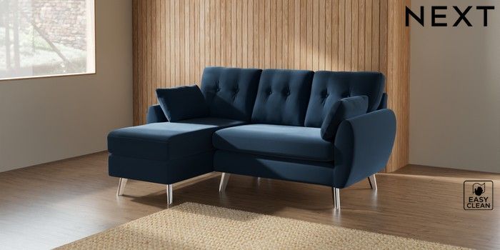 7.3.1 Buy Wilson Buttoned Back Small Sofa Chaise - Left Hand Plush Velvet Easy Clean Airforce Blue Metal Tapered - Chrome from the Seasons online shop Click here to use our website with more accessibility support, for example screen readers
