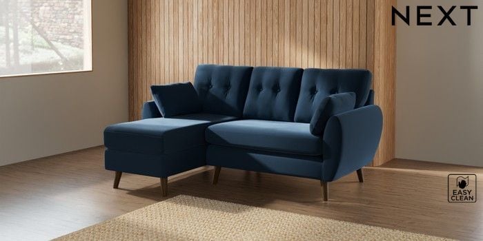7.3.1 Buy Wilson Buttoned Back Small Sofa Chaise - Left Hand Plush Velvet Easy Clean Airforce Blue Retro Tapered - Mid from the Seasons online shop Click here to use our website with more accessibility support, for example screen readers