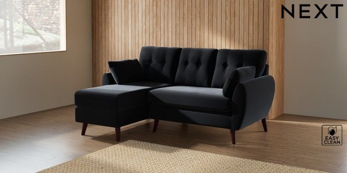 7.3.1 Buy Wilson Buttoned Back Small Sofa Chaise - Left Hand Plush Velvet Easy Clean Charcoal Grey Retro Tapered - Dark Brown from the Seasons online shop Click here to use our website with more accessibility support, for example screen readers
