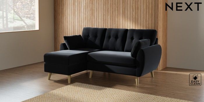 7.3.1 Buy Wilson Buttoned Back Small Sofa Chaise - Left Hand Plush Velvet Easy Clean Charcoal Grey Retro Tapered - Light from the Seasons online shop Click here to use our website with more accessibility support, for example screen readers
