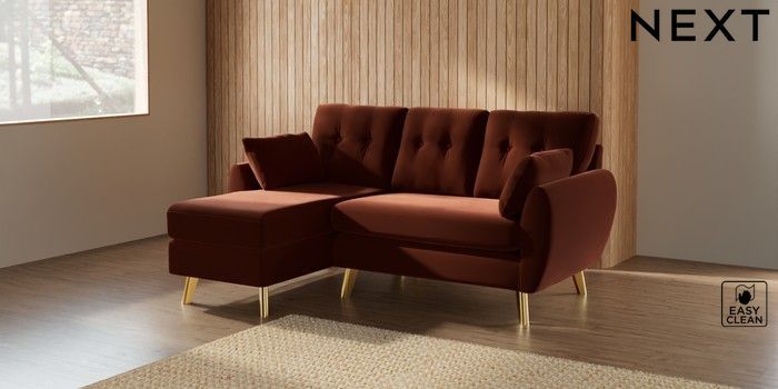7.3.1 Buy Wilson Buttoned Back Small Sofa Chaise - Left Hand Plush Velvet Easy Clean Ginger Orange Metal Tapered - Gold from the Seasons online shop Click here to use our website with more accessibility support, for example screen readers