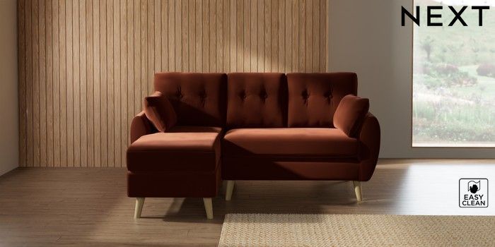 7.3.1 Buy Wilson Buttoned Back Small Sofa Chaise - Left Hand Plush Velvet Easy Clean Ginger Orange Retro Tapered - Light from the Seasons online shop Click here to use our website with more accessibility support, for example screen readers