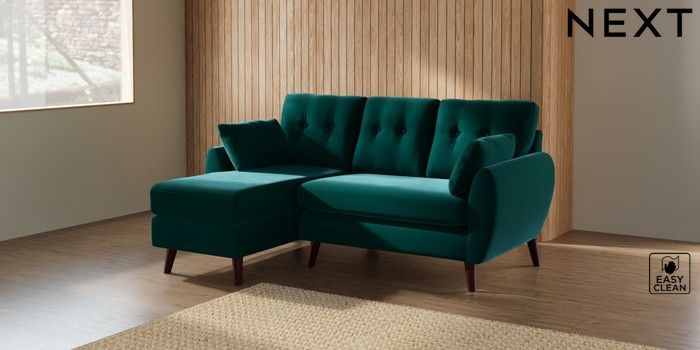 7.3.1 Buy Wilson Buttoned Back Small Sofa Chaise - Left Hand Plush Velvet Easy Clean Juniper Green Retro Tapered - Dark Brown from the Seasons online shop Click here to use our website with more accessibility support, for example screen readers