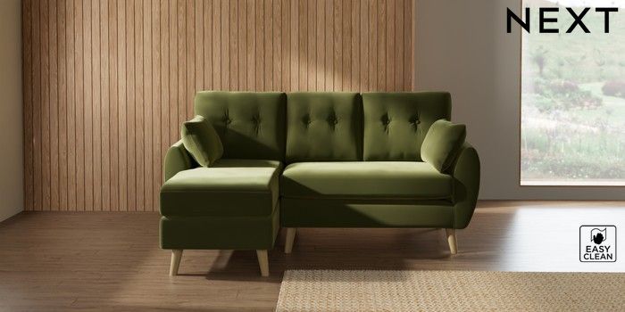 7.3.1 Buy Wilson Buttoned Back Small Sofa Chaise - Left Hand Plush Velvet Easy Clean Mid Olive Green Retro Tapered - Light from the Seasons online shop Click here to use our website with more accessibility support, for example screen readers