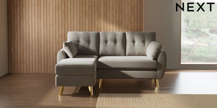 7.3.1 Buy Wilson Buttoned Back Small Sofa Chaise - Left Hand Ripple Chenille Light Natural Metal Tapered - Gold from the Seasons online shop Click here to use our website with more accessibility support, for example screen readers
