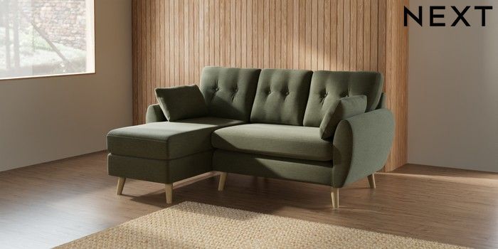 7.2.10 Buy Wilson Buttoned Back Small Sofa Chaise - Left Hand Ripple Chenille Mid Moss Green Retro Tapered - Light from the Seasons online shop Click here to use our website with more accessibility support, for example screen readers