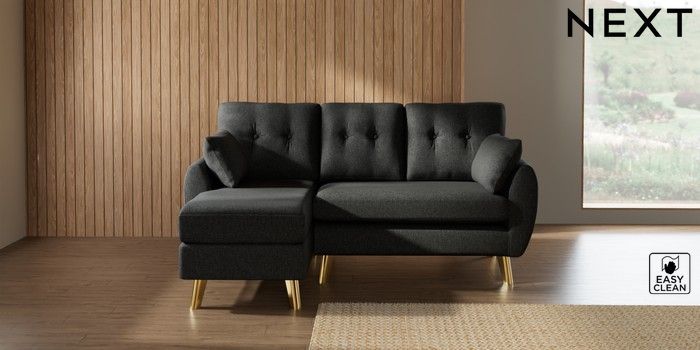 7.3.1 Buy Wilson Buttoned Back Small Sofa Chaise - Left Hand Tweedy Blend Easy Clean Charcoal Grey Metal Tapered - Gold from the Seasons online shop Click here to use our website with more accessibility support, for example screen readers