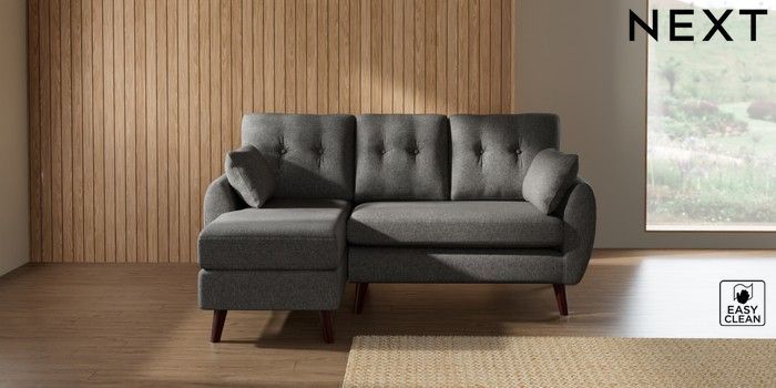 7.3.1 Buy Wilson Buttoned Back Small Sofa Chaise - Left Hand Tweedy Blend Easy Clean Dark Grey Retro Tapered - Dark Brown from the Seasons online shop Click here to use our website with more accessibility support, for example screen readers