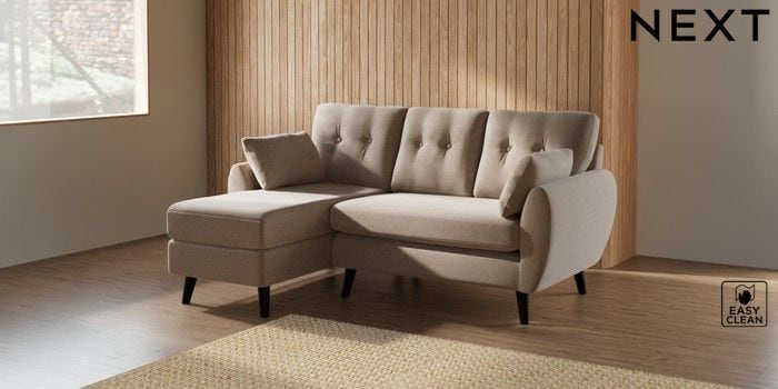 7.3.1 Buy Wilson Buttoned Back Small Sofa Chaise - Left Hand Tweedy Blend Easy Clean Light Dove Natural Retro Tapered - Dark from the Seasons online shop Click here to use our website with more accessibility support, for example screen readers