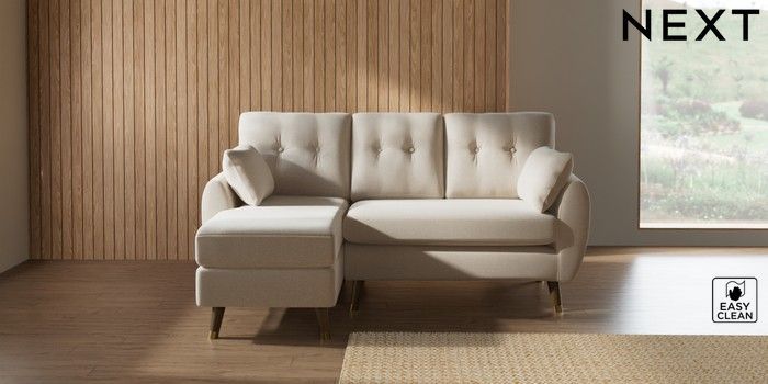 7.3.1 Buy Wilson Buttoned Back Small Sofa Chaise - Left Hand Tweedy Blend Easy Clean Oyster Low Retro Tapered Metal Cap - Mid from the Seasons online shop Click here to use our website with more accessibility support, for example screen readers
