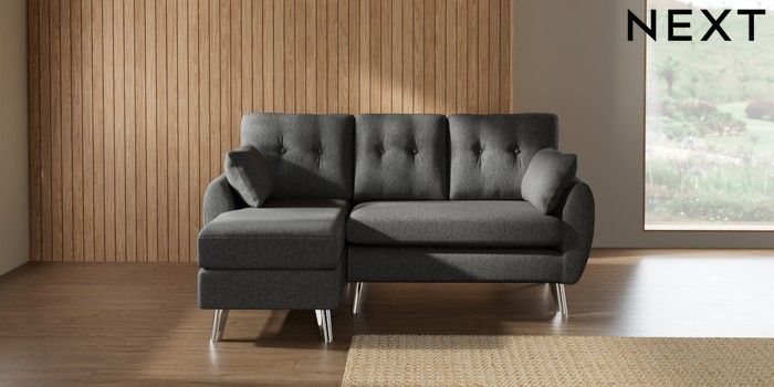 7.3.1 Buy Wilson Buttoned Back Small Sofa Chaise - Left Hand Tweedy Chenille Dark Grey Metal Tapered - Chrome from the Seasons online shop Click here to use our website with more accessibility support, for example screen readers