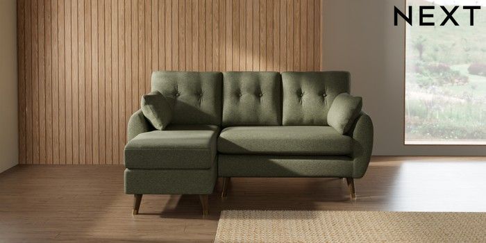 7.3.1 Buy Wilson Buttoned Back Small Sofa Chaise - Left Hand Tweedy Chenille Mid Moss Green Low Retro Tapered Metal Cap - Mid from the Seasons online shop Click here to use our website with more accessibility support, for example screen readers