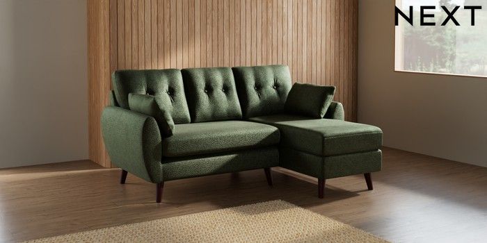 7.3.1 Buy Wilson Buttoned Back Small Sofa Chaise - Right Hand Boucle Chenille Dark Moss Green Retro Tapered - Dark Brown from the Seasons online shop Click here to use our website with more accessibility support, for example screen readers