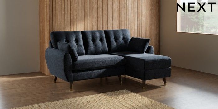 7.3.1 Buy Wilson Buttoned Back Small Sofa Chaise - Right Hand Boucle Chenille Dark Slate Blue Low Retro Tapered Metal Cap - Mid from the Seasons online shop Click here to use our website with more accessibility support, for example screen readers