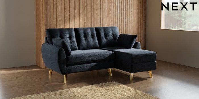7.3.1 Buy Wilson Buttoned Back Small Sofa Chaise - Right Hand Boucle Chenille Dark Slate Blue Metal Tapered - Gold from the Seasons online shop Click here to use our website with more accessibility support, for example screen readers