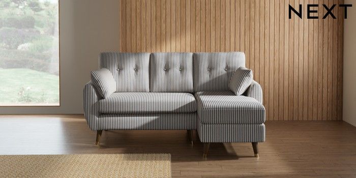 7.3.1 Buy Wilson Buttoned Back Small Sofa Chaise - Right Hand Chenille Stripe Slate Blue Low Retro Tapered Metal Cap - Mid from the Seasons online shop Click here to use our website with more accessibility support, for example screen readers