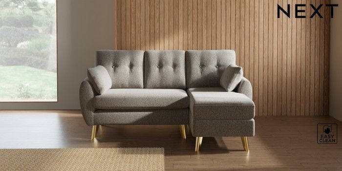 7.3.1 Buy Wilson Buttoned Back Small Sofa Chaise - Right Hand Chunky Boucle Easy Clean Dove Metal Tapered - Gold from the Seasons online shop Click here to use our website with more accessibility support, for example screen readers