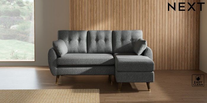 7.3.1 Buy Wilson Buttoned Back Small Sofa Chaise - Right Hand Chunky Boucle Easy Clean Mid Grey Low Retro Tapered Metal Cap - Mid from the Seasons online shop Click here to use our website with more accessibility support, for example screen readers