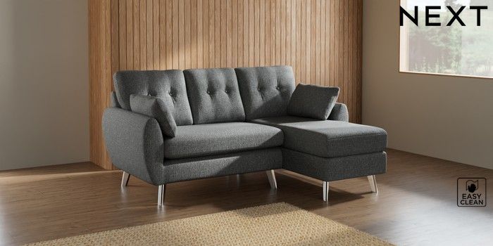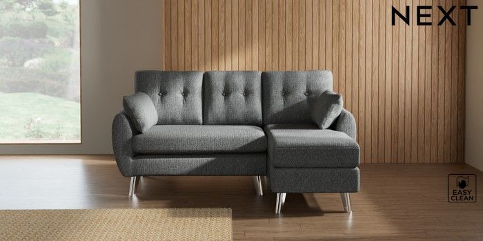 7.3.1 Buy Wilson Buttoned Back Small Sofa Chaise - Right Hand Chunky Boucle Easy Clean Mid Grey Metal Tapered - Chrome from the Seasons online shop Click here to use our website with more accessibility support, for example screen readers